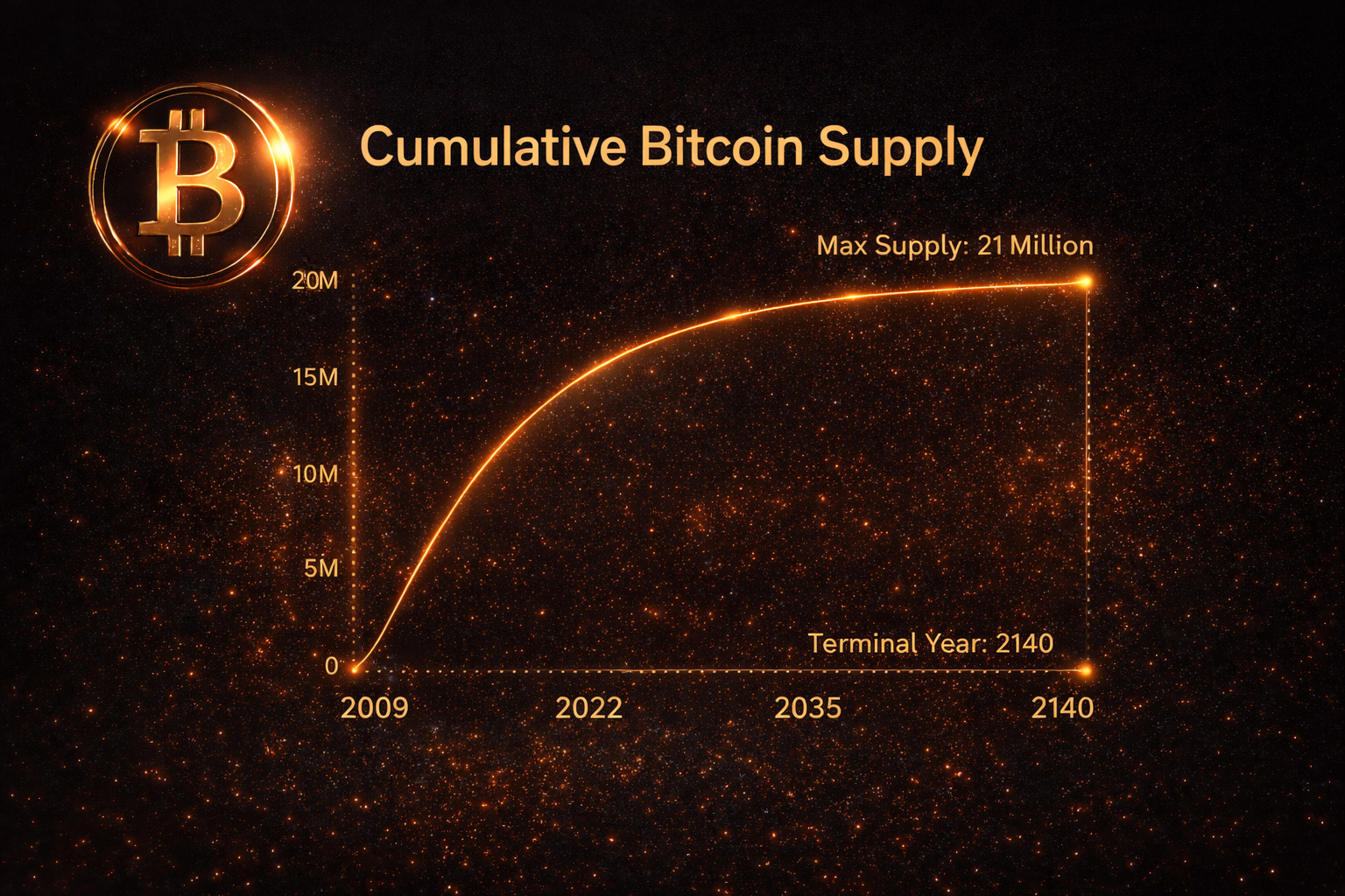 The total supply of Bitcoin is programmatically limited to 21 million coins, a deflationary design embedded in the protocol since launch in 2009.