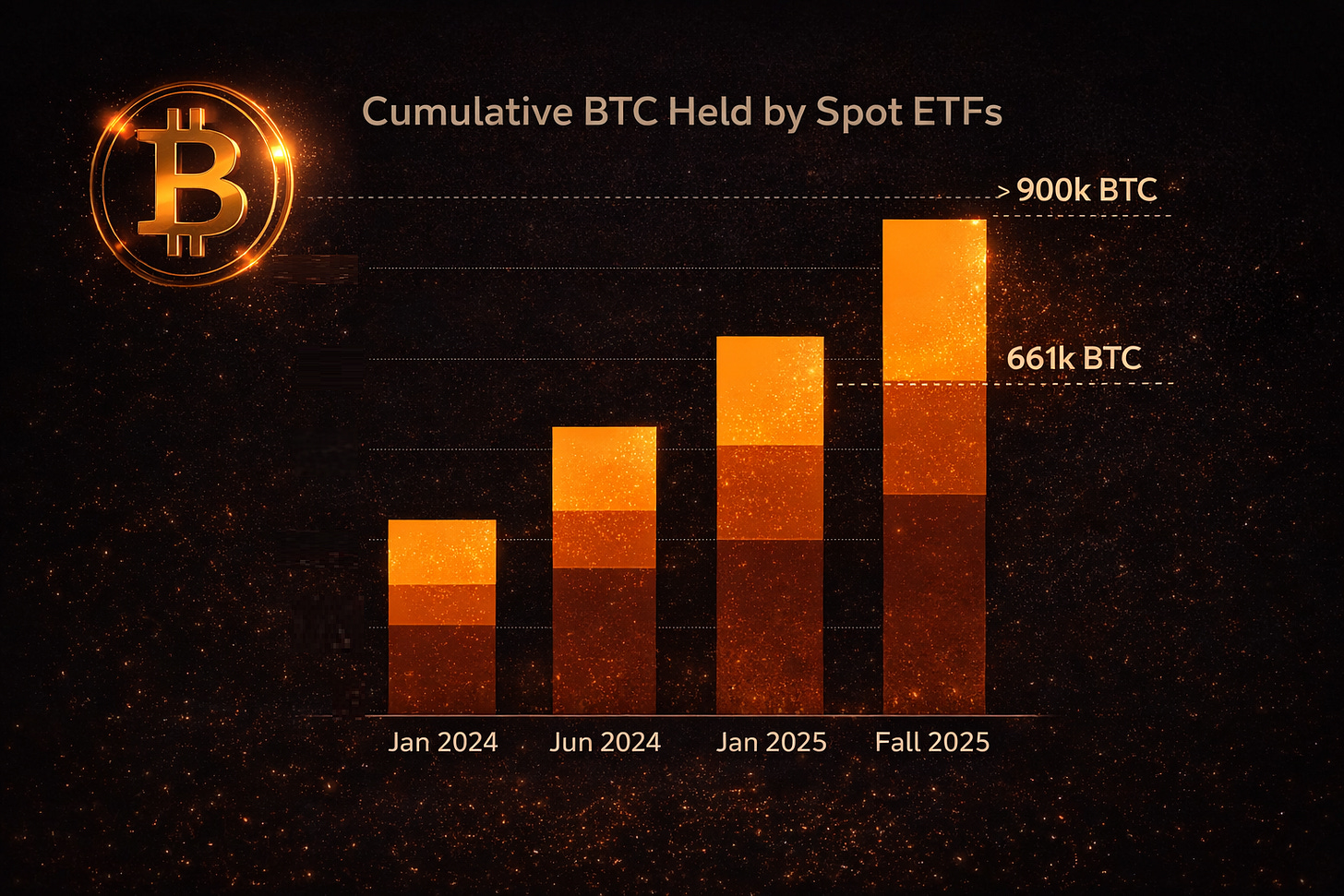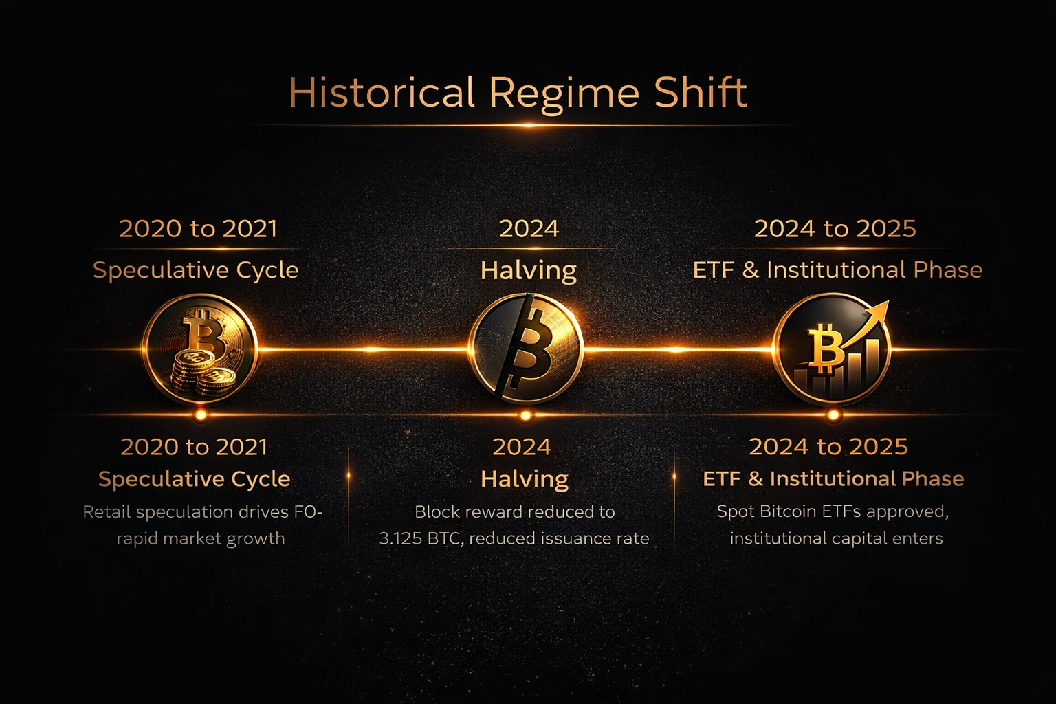 The 2024-2025 period represents a structural inflection point for Bitcoin. Three developments define this phase: