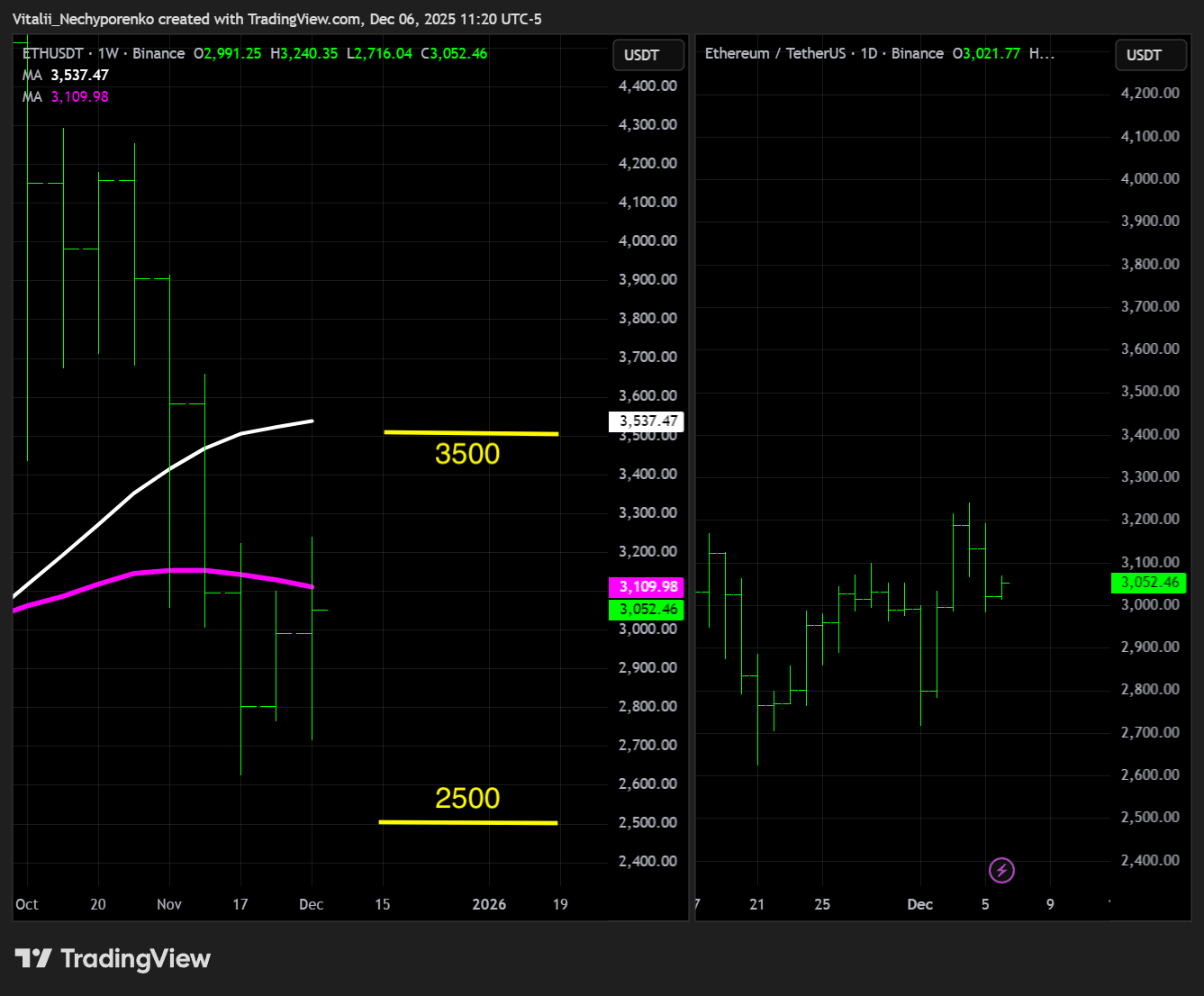 The Digital Collateral looks similar, with both key support and resistance levels remain intact at 2500 and 3500 respectively.